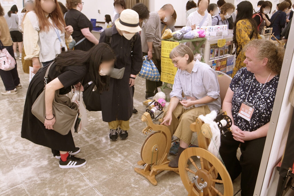 「Kakara Woolworks」では、マジャクラフト社とルエ社の日本総代理店として、紡ぎ車や織機、カーダー、羊毛ファイバー、染料等を販売しています。今年はニュージーランドからマジャクラフト社も参加し、紡ぎ車の実演を行っていました。人間工学的にデザインされたもので、快適な紡ぎ心地が特徴だそうです!