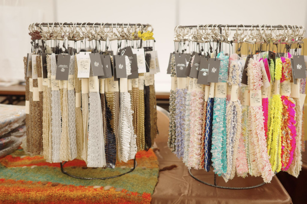 「佐藤繊維株式会社」は、山形県寒河江市の紡績・ニットメーカーです。スピパでは、原毛やはぎれ、オリジナルレースなどを出品しました。中でも、オリジナルアパレルブランドのはぎれパックがとくに好評だったとのこと。生地がたっぷり入っているので、ワンピースやボトムス作りに使用する方が多いそうです。