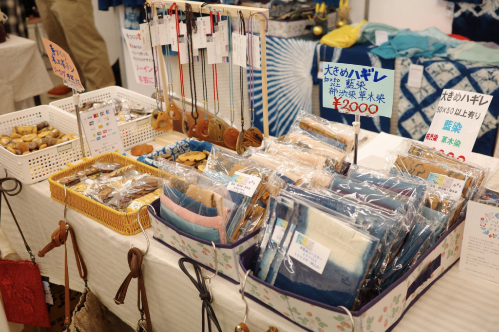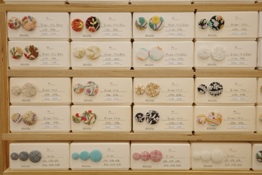 「くるみボタン工房 MiSuZuYa」のブースは、思わず微笑んでしまうユニークなものから緻密で美しいものまで、とにかく圧巻の品揃え!刺繍のくるみボタンは、ご主人が描いたデザインをもとに製作しているそうです。好きな生地を選んでヘアゴム・ブローチを作れるワークショップも好評でした。
