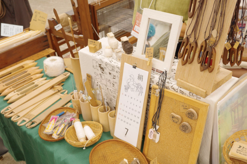 山梨県北杜市にて、ご夫婦で織り機・紡ぎ機の制作や修理をされている「きつつき工房」。織り機づくりを始めてから、もう30年近くにもなるそうです。スピパでは、折りたたみ可能な高機や織り道具のほか、端材で作ったネックレスや羊の置物など、可愛らしい小物雑貨も販売しました。