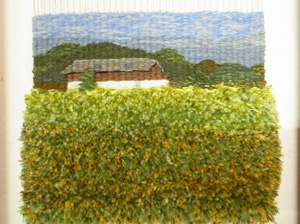 風景などの絵を織物で表現する場合に平坦にならないように糸の表情を生かした手法をいくつか取り入れてご指導したいと思っています。予めいくつかの図案をこちらで用意しようと思っています。時間の都合上、葉書大サイズを予定しています。