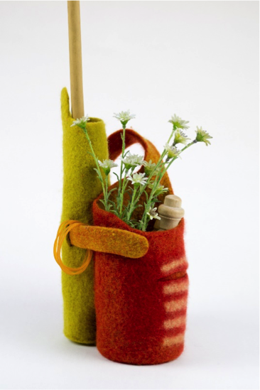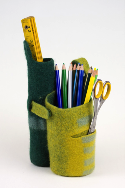 しっかり縮絨したフェルトは、先のとがった道具や傷つきやすいものをカバーし守ります。