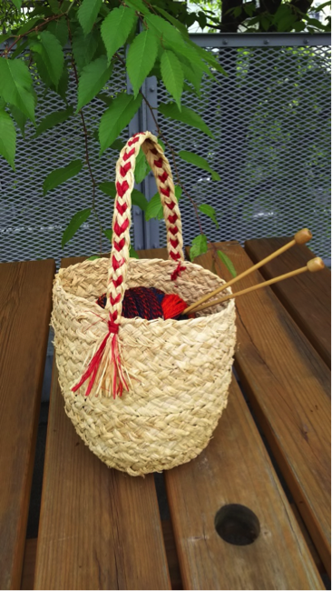 ラフィアの技法でスピンドルバッグをつくります。