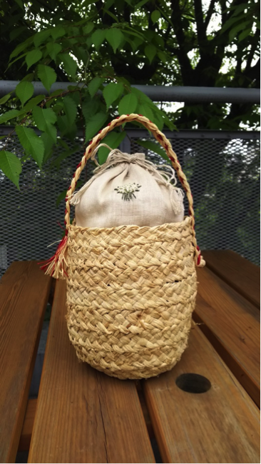 「ラフィアのスピンドルバッグ」