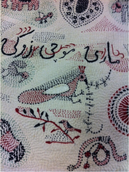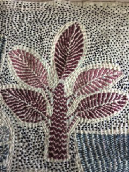 カンタはインドのベンガル地方で生まれた刺し子刺繍布です。白い布に、花や動物や人物を色糸で刺繍し、余白のすべてを白糸でさざ波のように刺すのが特徴です。