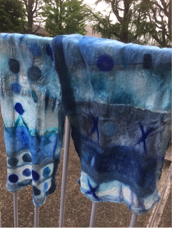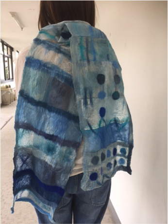 「misora-iro(みそらいろ)御空色の藍と青のフェルトマフラー : 真綿とカシミヤ」 大金 晶子