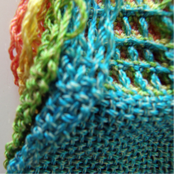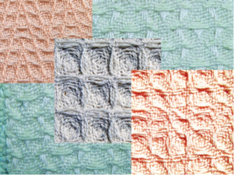人気のあるワッフル織りをテーマにしました。お菓子のワッフルのような、ピラミッド(四角すい)を逆さにした穴が連続したような、アリ地獄のような・・・あのワッフル織りをもっともっと楽しめるようにする講習です。基本、応用の方法などワッフル織りの世界をどっぷり楽しみます。レベル:中級程度。