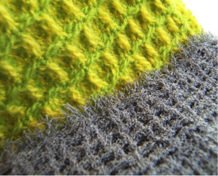 ここにKFS梅村マルティナとのコラボによる新しいコンセプトの「レリーフ」がこの秋ラインナップに加わります。レリーフ毛糸はベースとなるベーシックカラーと装飾となるレリーフカラーで染められており、レリーフカラー部分の編み方を変えて目立たせることにより現われるユニークな模様が、編み手の遊び心をくすぐります。