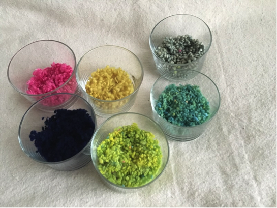 (藍染、化学染した福島産 角真綿8枚。染色済み 15・5マイクロンのカシミヤ原毛25g、染色済み カシミヤプレフェルトシート含む)/15名