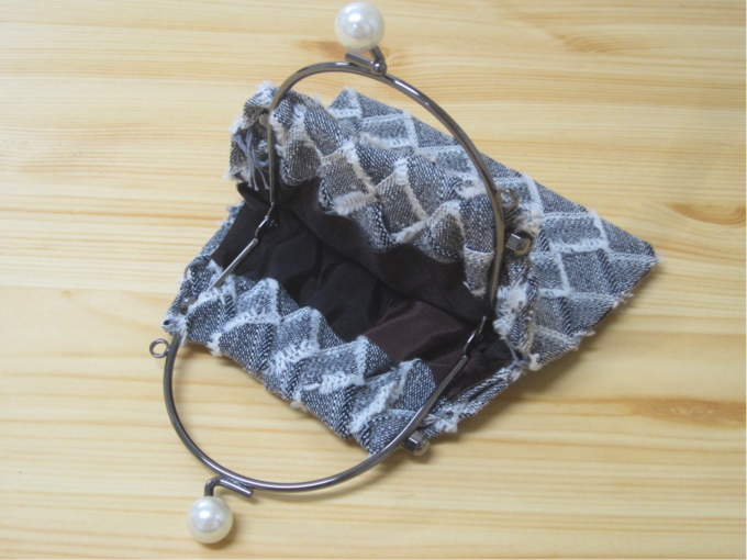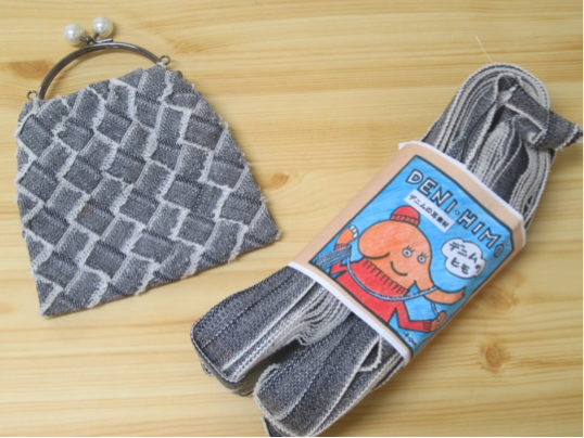 ジーンズを仕立てるときに出る廃材のデニひもで、内袋付きの小ぶりな口金バッグをつくります。手かがりなので、時間内に完成!オマケでゆび織りマフラーの説明も