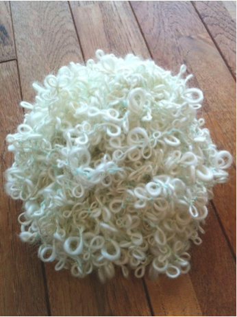 ニュージーランドのマオリの女性のテクニックで、見た目は長く撚りのかかっていない”ロービング”の状態です。Kiwi craftの糸は、編みやかぎ針編みに使用されていました。