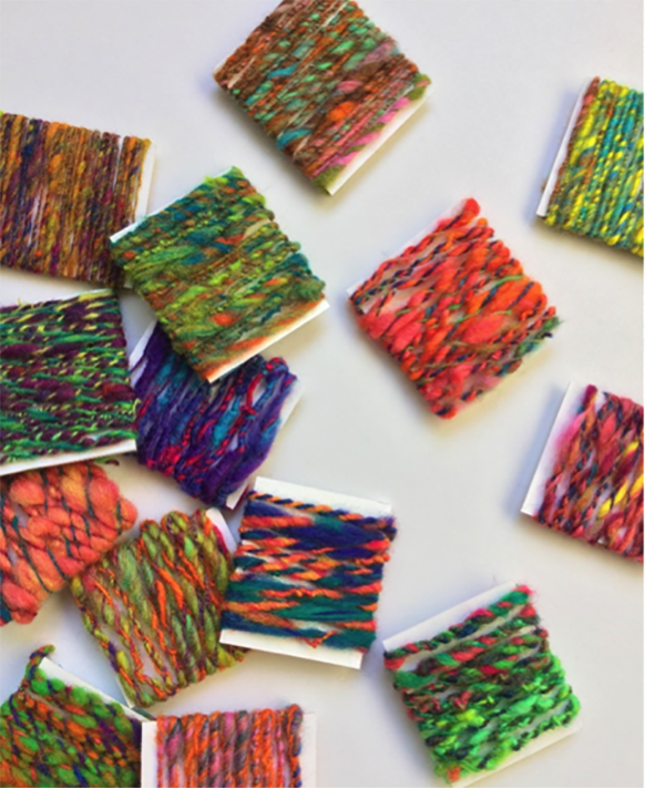 繊維の混色には、鮮やかさを残したまま色を作り出す、まるで点描画のような色覚効果があります。この特徴を上手く使いこなすためのレッスンです