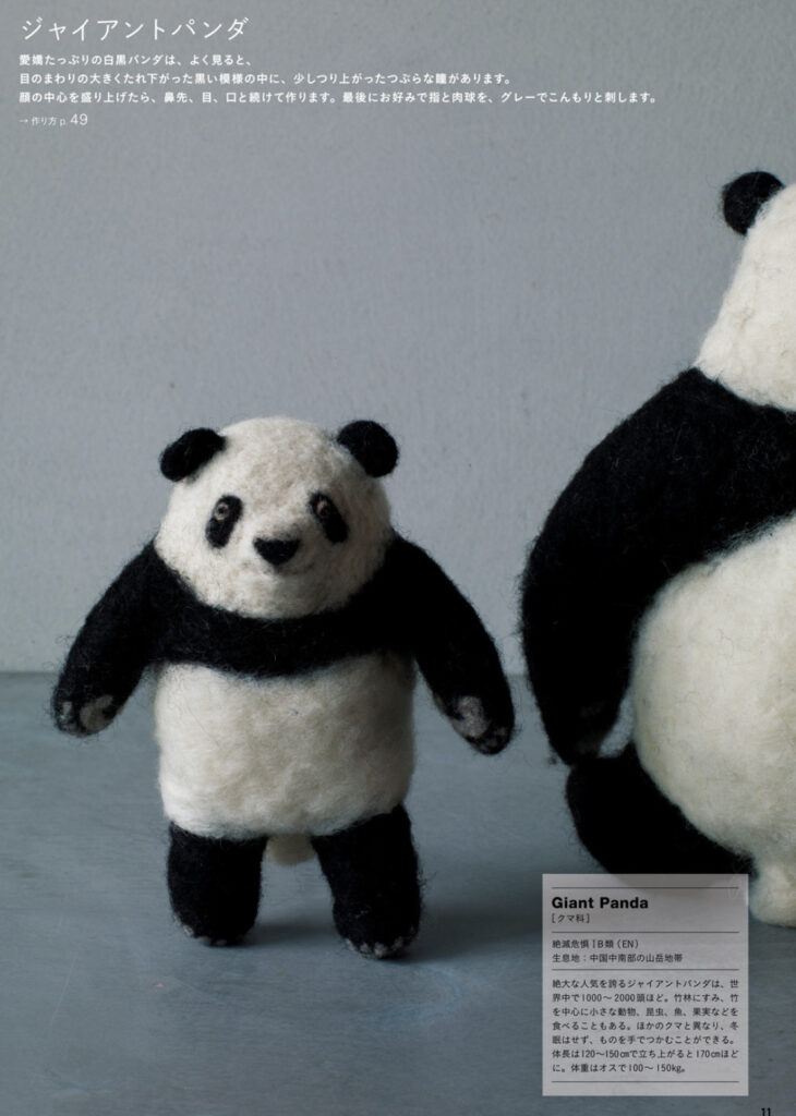 の中にジャイアントパンダの子どもが掲載されていますが、口絵にチラッと写っているお父さんパンダを作りたいと思います。
